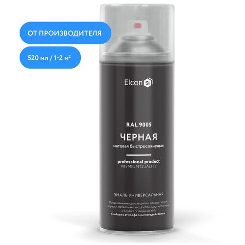 Аэрозольная краска Elcon Универсальная акриловая эмаль Elcon Быстросохнущая, Акриловая, Глянцевое покрытие, черный матовый