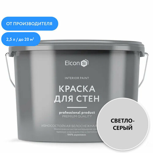 Акриловая краска премиум-класса Elcon, декоративная, моющаяся, быстросохнущая, для стен, обоев, потолка, дерева, светло-серая, 2,5 л