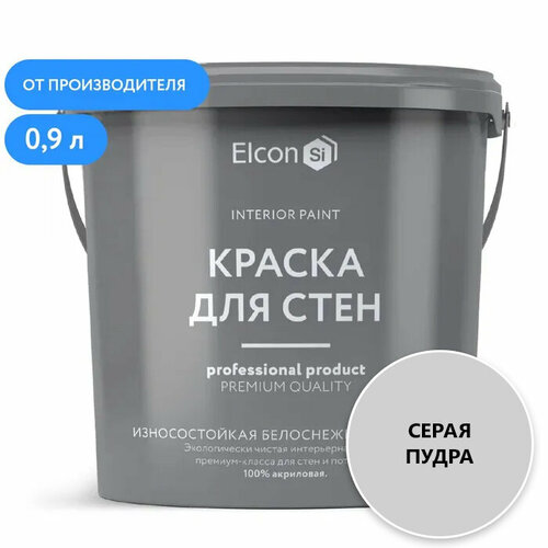 Акриловая краска премиум-класса Elcon, декоративная, моющаяся, быстросохнущая, для стен, обоев, потолка, бетона, кирпича, дерева, серая пудра, 0,9 л