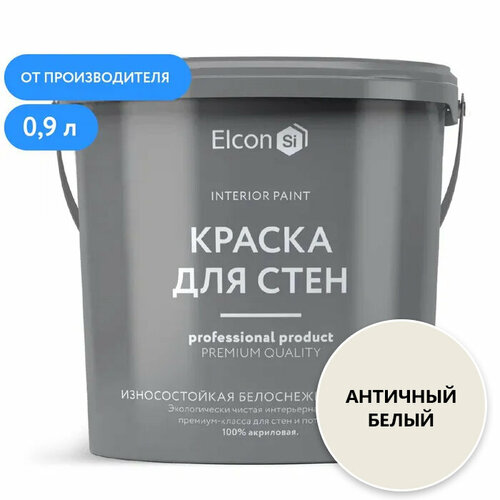 Акриловая краска премиум-класса Elcon, декоративная, моющаяся, быстросохнущая, для стен, обоев, потолка, бетона, кирпича, дерева, античный белый, 0,9 л
