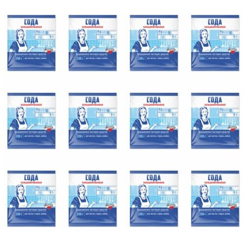 Традиционное чистящее, моющее, жироудаляющее средство. Универсально для уборки всего дома. Предназначено для мытья пола, посуды, сантехники, кафельной плитки, в том числе для трудноудаляемых загрязнений. Эффективно, как усилитель стирки, для замачивания белья и смягчения воды при стирке. Работает в малых концентрациях, эффективно в воде любой жесткости и температуры.Мытье и чистка твердых поверхностей: нанесите соду на предварительно увлажненную водой поверхность, либо используйте в виде раствора – 15-20 грамм (2-3 столовые ложки) на 1 литр горячей воды, протрите губкой или тряпкой, промойте чистой теплой водой. Во избежание появления царапин на поверхности не рекомендуется использовать в сухом виде!Не используйте для мытья поверхностей, восприимчивых к щелочи! Мытье пола и общая уборка: растворите 20 грамм (3 столовые ложки) соды в 5 литрах горячей воды, нанесите полученный раствор на загрязненную поверхность и протрите при помощи мягкой тряпки. Промойте чистой водой и при необходимости затрите насухо.Не используйте для мытья поверхностей, восприимчивых к щелочи!Машинная стирка белья: для усиления эффективности стирального порошка добавьте 15-20 грамм (2-3 столовые ложки) соды в отсек для стирального порошка. Стирайте при температурах 50-95ºС. При выборе режима стирки и температуры следуйте рекомендациям, указанным на ярлыках изделий. Ручная стирка белья: для усиления эффективности стирального порошка добавьте 20 грамм (3 столовые ложки) соды на 10 литров воды. Стирайте при температурах 50-95ºС. При выборе режима стирки и температуры следуйте рекомендациям, указанным на ярлыках изделий.Замачивание белья: растворите 15-20 грамм (2-3 столовые ложки) соды в 10 литров теплой воды (30-45ºС). Положите загрязненное белье в полученный раствор на 2-4 часа, после чего прополощите, при необходимости постирайте. При выборе режима замачивания, стирки и температуры следуйте рекомендациям, указанным на ярлыках изделий.Меры предосторожности: Беречь от детей! Средство пылит, избегать вдыхания пыли! Не допускать попадания на слизистые оболочки и кожу, при попадании – промыть большим количеством холодной воды, при необходимости обратиться к врачу. В упаковке 12 шт.