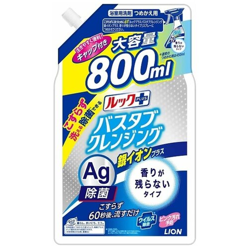 Чистящее средство для ванной комнаты Lion Look Plus быстрого действия с ионами серебра аромат трав и мяты мягкая упаковка 800 мл