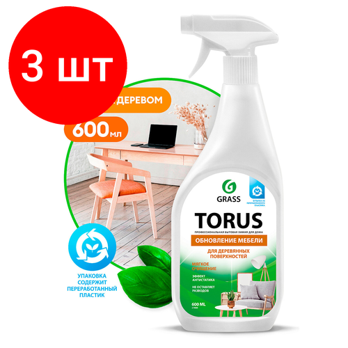 Комплект 3 шт, Полироль для мебели 600 мл GRASS TORUS "Антипыль", распылитель, 219600