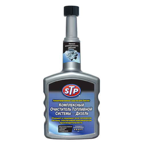 Комплексный очиститель топливной системы дизельного двигателяComplete fuel system cleaner - dieselЭтот проверенный на дороге и треке комплексный очиститель топливной системы дизельного двигателя STP® специально разработан для очистки и защиты всей топливной системы и обеспечения максимальной производительности. Почувствуйте разницу! Преимущества от использования одной бутылки комплексного очистителя топливной системы дизельного двигателя STP®:¬ экономия топлива, ¬восстановление потерянной мощности и ускорения, ¬уменьшение уровня выбросов и дыма, предотвращение затрудненного запуска и провала оборотов двигателя.инструкция: Заливайте всю бутылку присадки в полный бак (50–60 л) каждые 6400 км. Безопасна для использования с другими присадками STP®. Подходит для всех дизельных двигателей, включая двигатели с непосредственным впрыском топлива, двигатели с непрямым впрыском топлива и аккумуляторной топливной системой, а также для каталитических нейтрализаторов.