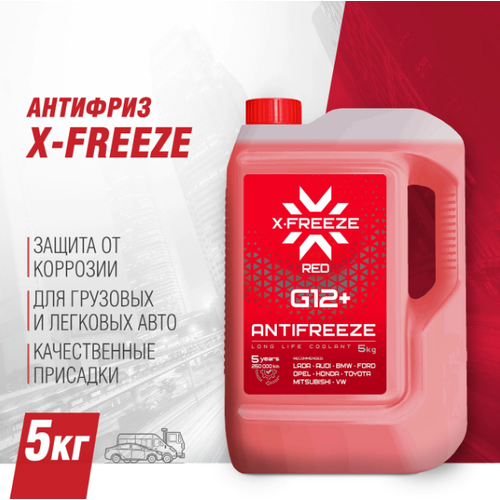 Антифриз для двигателя автомобиля X-Freeze G12+ красный, 5 кг, охлаждающая жидкость, готовый к применению