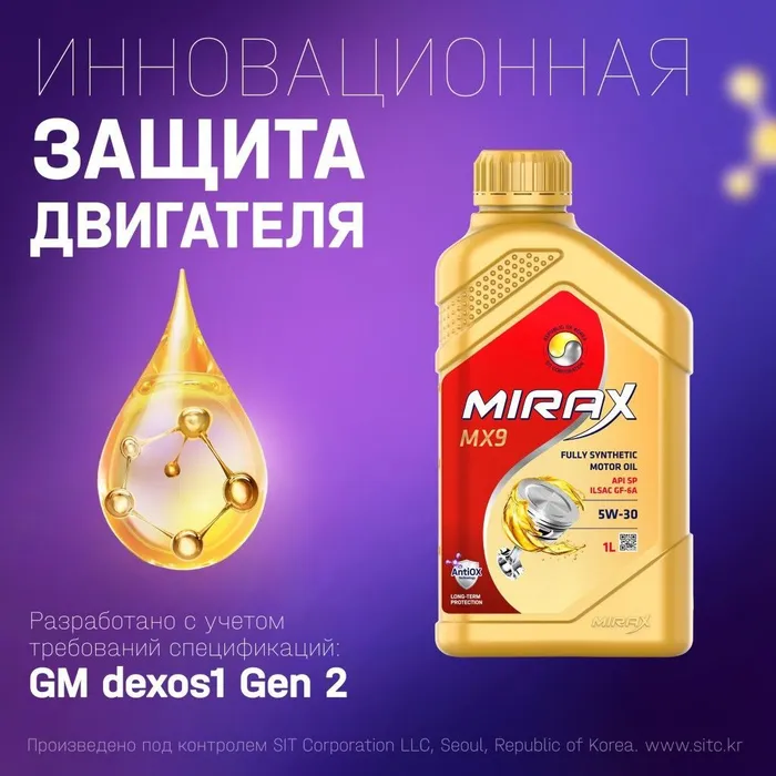 Моторное масло MIRAX MX9 SAE 5W-30, API SP, ILSAC GF-6A Синтетическое 1 л