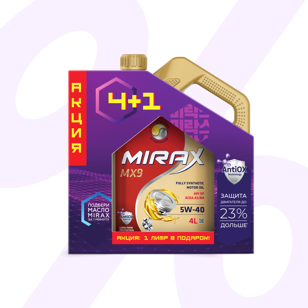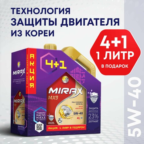 Моторное масло MIRAX MX9 5W-40 ACEA A3/B4 API SP Синтетическое Акция 4+1