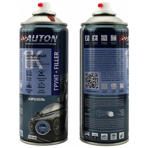 AN942 Аэрозольный грунт "1К Акрил Филлер" (1К Acril Filler) цвет Черный, аэрозольный, 520 мл "Автон/Auton"