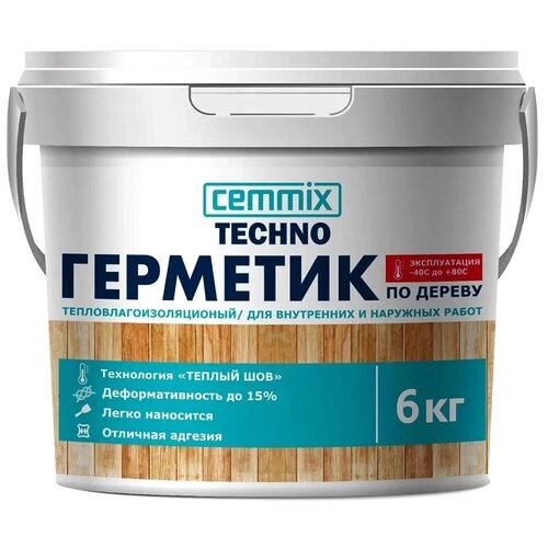Герметик акриловый для дерева Cemmix Теплый шов, 6 кг, белый