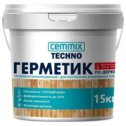 Герметик Cemmix «Тёплый шов» – это специальный герметик, который используется для утепления и заделки швов практически в любом месте деревянного или каркасного домостроения. Повышенные эластичные свойства позволяют выдерживать продольное и поперечное растяжение до 300%, что позволяет выдерживать перепады температур и влажности, исключая выпадение из швов. Специально разработанная композиция на основе акрила и сложных сополимеров, сочетает в себе качества герметика, теплоизоляции и гидроизоляции. Применение герметика по дереву «Тёплый шов» исключает появление сквозняков, устраняет «мостики холода», продувания и попадание влаги через наружные швы в помещения, при этом обработанные швы и примыкания остаются паропроницаемы. Преимущества: - Повышенная эластичность и упругость; - Низкая теплопроводность и паропроницаемость; - Широкий диапазон температуры эксплуатации; - Экологичность и долговечность; - После высыхания можно окрашивать. Применяется: - Для заполнение швов между бревнами, брусом и другими стыками; - Для установок дверных и оконных блоков; - Для герметизации элементов из пластмассы, металла, дерева - Для герметизация и заделка трещин шириной до 5 см; - Для использования в местах повышенной влажности; - Подходит для внутренних и наружных работ. Основа: акриловая; Внешний вид материала: паста; Плотность: 1,5 ± 0,05 кг/л; Скорость полимеризации (при +20 °С и 65% относительной влажности): 2 мм/сутки; Допустимая деформация: ±25 %; Относительное удлинение при разрыве: 300 %; Температура эксплуатации: от -40 до +60 °С; Температура нанесения: от +5 до +30 °С; Прогнозируемый срок службы: не менее 30 лет; Начальное время полимеризации: 75 мин; Цвет: дуб; Объём: 15 кг.