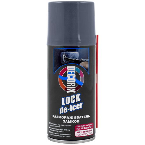 Размораживатель замков Lock De-Icer DECORIX быстро размораживает лёд в автомобильных замках, позволяя сэкономить время на подготовку автомобиля к движению.Легко и быстро размораживает сильно обледеневшие механические соединения, личинки замков (дверей, багажника, бытовых замков) и другие подвижные соединения, эксплуатируемые при отрицательных температурах. Вытесняет воду и на длительное время предотвращает повторное замерзание, защищает от коррозии.Безопасен для лакокрасочного покрытия, пластика, хрома и резины. Для предотвращения замерзания личинок замков рекомендуется проводить обработку после каждой мойки автомобиля.
