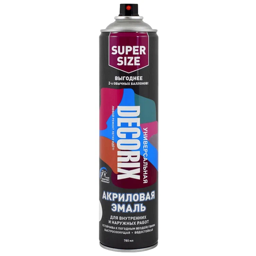 Высококачественная универсальная акриловая краска DECORIX используется в декоративно-оформительских работах, строительстве и ремонте. Предназначена для окрашивания: древесины, пластика, металла, бетона, кирпича, керамики, стекла, картона, минеральных поверхностей. Аэрозольная краска удобна для окрашивания небольших поверхностей и труднодоступных мест. Образует гладкое, устойчивое к выцветанию покрытие.