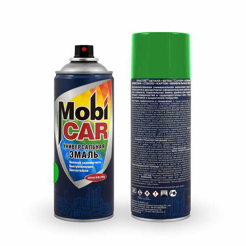 Аэрозольная эмаль универсальная MobiCAR 520 мл глянцевая, цвет Зелёный глянцевый RAL 6029