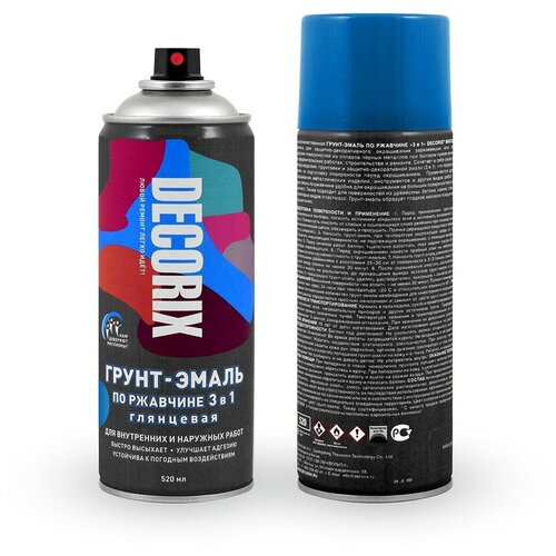 Грунт эмаль по ржавчине 3 в 1 в аэрозоли Decorix глянцевая (520мл) синий (0106-09 DX)