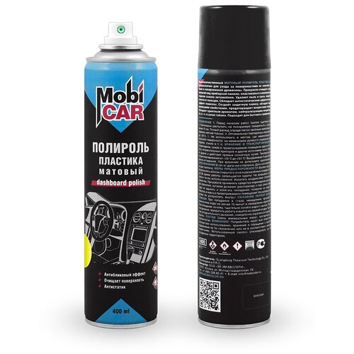 Высококачественный матовый полироль пластика MobiCAR® предназначен для ухода за поверхностями из пластика, винила, кожи и лакированной древесины. Прекрасно очищает и обновляет внешний вид приборной панели, пластиковых и виниловых деталей отделки салона автомобиля. Удаляет пыль и грязь, жирный блеск и пятна от пальцев. Обладает антистатическим эффектом и придаёт эффект новизны. Создаёт защитную плёнку, обладает водоотталкивающими свойствами, предотвращает выцветание поверхности. Обладает приятным ароматом, нейтрализующим неприятные запахи, в т. ч. и запах табака. Подходит для бытового применения.