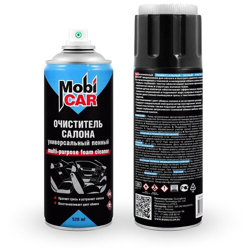 Профессиональный универсальный пенный очиститель салона MobiCAR® предназначен для лёгкого и быстрого удаления загрязнений различного происхождения с тканевой и велюровой обивки салона автомобиля.Формула «глубокой» чистки обеспечивает высокое проникновение активных компонентов пены в структуру волокон ткани.Удобная щётка-колпачок обеспечивает эффективную обработку тканей от въевшихся загрязнений и поднимает ворс ковровых покрытий.Удаляет даже сильно въевшуюся грязь с текстильных покрытий, велюра, ковриков.Восстанавливает цвет обивки салона и не оставляет разводов.Содержит специальный нейтрализатор посторонних запахов.Пенный очиститель также подходит для бытового применения. Эффективно очищает глубокие загрязнения тканевой обивки мебели, жалюзи, фарфора, керамической плитки.