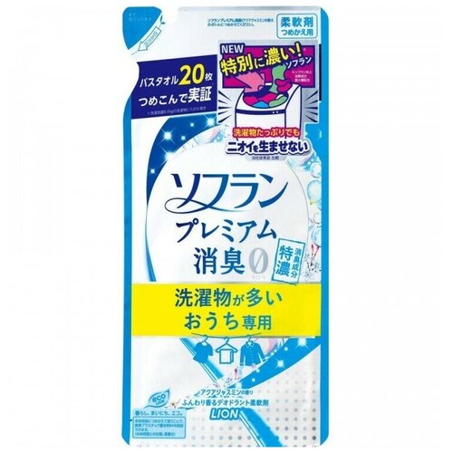 LION Кондиционер для белья "SOFLAN" (защищающий от неприятного запаха до самого вечера "Premium Deodorizer Zero-?"- аромат жасмина и акватики) МУ 430 мл / 16