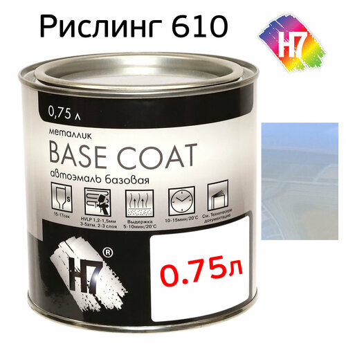 Однокомпонентная базовая авто эмаль H7 (банка 0,75 л) цвет Лада 610 Рислинг (эталон Мобихел)• наличие: 10 шт.• код товара: 75220• артикул: 383960—————————————Предназначается для окраски поверхности кузова автомобиля в качестве первого слоя в двухслойной системе покрытия в комплекте с двухкомпонентным акриловым лаком, а также для ремонтной окраски кузова и деталей автомобилей по старому покрытию.—————————————• Представляет собой суспензию эффектных и цветных пигментов в растворе полиэфирной, меламиновой смол с введением целевых добавок.• В качестве базисного слоя в двухслойном покрытии с верхним прозрачным лаком для окраски предварительно подготовленных металлических поверхностей кузова и деталей автомобилей. Преимущества: • высокие декоративные качества комплексного покрытия• долговечность покрытия. Подготовка поверхности: • Поверхность очистить, обезжирить, загрунтовать.• При нанесении на старое покрытие оно должно быть отшлифовано, обезжирено и высушено.—————————————Технические характеристики:• оптимальная Т нанесения: +20° С• минимальная Т нанесения: +15° С• влажность воздуха: не более 75%.• разбавление: до 25-50 %.• рабочая вязкость: 15-17 сек• сопло краскопульта: 1,2-1,5 мм• число слоев: 2-6 в зависимости от цвета• межслойная выдержка: 5-10 мин при +20° С• выдежка перед лаком: 10-15 мин• толщина покрытия: 15-25 мкм• расход: 50 -100 г/м2 на один слой• гарантийный срок хранения: 36 мес