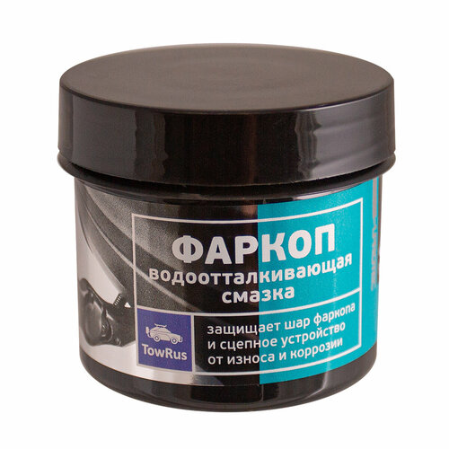 Смазка «Фаркоп» от Супротек Апрохим - это средство защиты шара фаркопа и тягово-сцепного устройства прицепа от износа и коррозии. Подходит для любых типов ТСУ - съемных и нет, с любым материалом покрытия.В основе смазки для шара фаркопа - комплексный кальцевый загуститель, благодаря которому смазка для прицепа "Фаркоп" превосходит литиевые и литоловые смазки по следующим рабочим свойствам:Водостойкость. Кальциевые смазки сложнее и дольше вымываются водой, что позволяет использовать смазку в дождливую погоду на мокрых дорогах.Адгезия. Благодаря кальциевому загустителю смазка лучше прилегает к металлу, ее сложнее выдавить из узла, чем литиевую / литоловую. Тонкая пленка смазки остается даже при значительном давлении между деталями.Механическая стабильность. Кальциевый каркас смазки лучше противостоит механическим нагрузкам, не разрушается и соответственно дольше защищает от износа.Удобная упаковка (баночка 6см*6см*6см с многоразовой крышкой) позволяет нанести смазку на шар максимально просто и быстро:Очистите шар фаркопа от старой смазки, протрите насухо. Снимите крышку с баночки со смазкой.Переверните баночку и наденьте ее на шар.Несколькими круговыми движениями распределите смазку по шару. После применения, закройте крышкой банку и припрячьте до следующего применения.При использовании сцепных устройств, которые в быту часто называют «фаркопом», необходимо обеспечить должный уход за фаркопом, а особенно важно следить за:состоянием затяжки соединений. Рекомендуется проверять затяжку каждую 1000км пробега;работоспособоностью электроконтактов. Особое внимание стоит обращать на соединительный электрический разъем фаркопа и прицепа (вилка+розетка). В них попадает влага и как следствие - это окисление электроконтактов. Чтобы избежать этого, вы можете использовать аэрозольный Силиконовый Воск от Супротек Апрохим. Он будет отталкивать влагу и тем самым защитит электроконтакты от окисления;состоянием шара фаркопа. Изношенный, потерявший свою геометрическую форму шар существенно снижает надежность соединения со сцепной головкой на дышле прицепа. Диаметр шара обязательно должен быть 50 мм, не должно быть потертостей изменяющих его сферическую форму.