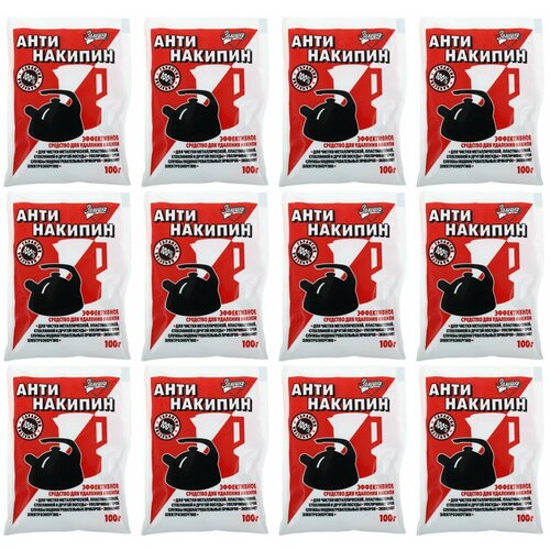 Комплект из 12 упаковок. Эффективное средство для удаления накипи. Для чистки металлической, пластмассовой, стеклянной и другой посуды. Увеличивает срок службы приборов. Экономит электроэнергию.
