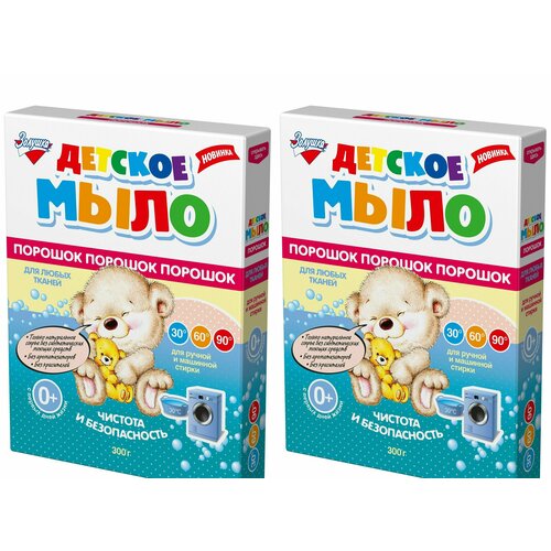 Детское мыло порошок - это натуральное детское мыло без каких-либо других добавок, красителей, ароматизаторов. Мыло порошок предназначено для бережной стирки детского белья с первых дней жизни малыша. Не вызывает аллергии, безопасно для кожи ребенка. Эффективно справляется со специфическими загрязнениями детского белья. Подходит для ручной и машинной стирки. Предназначено для всех видов тканей, цветного и белого белья. Не вызывает аллергии Безопасен для кожи ребенка Эффективно справляется со специфическими загрязнениями детского белья Подходит для ручной и машинной стирки Подходит для всех типов стиральных машин Предназначен для всех видов ткани цветного и белого белья Машинная стирка: Используйте как основное средство для стирки. Расход мыла порошка на один цикл загрузки: при слабой/средней степени загрязнения – 10-30г при температурах стирки 40-60ºС, при сильной степени загрязнения - 40-70г при температурах стирки 70-90ºС. При выборе режима стирки и температуры дополнительно следуйте рекомендациям, указанным на ярлыках Ваших изделий. Ручная стирка: Используйте как основное средство для стирки при температуре 30-40ºС. Расход мыла порошка на 10л воды: при слабой/средней степени загрязнения – 10-30г, при сильной степени загрязнения – 40-50г. Погрузите изделие в раствор, оставьте на некоторое время или сразу постирайте. Затем промойте водой. Меры предосторожности: При попадании на слизистую оболочку глаз - промыть большим количеством воды. Хранить в недоступном для детей месте вдали от пищевых продуктов при температуре до +30оС, предохранять от влаги. После использования или истечении срока годности упаковку утилизировать как бытовой отход. В комплекте 2 шт.