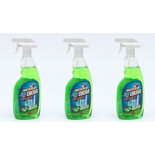 Золушка Чистые окна Зеленое яблоко, с триггером, 750 л, 3 шт