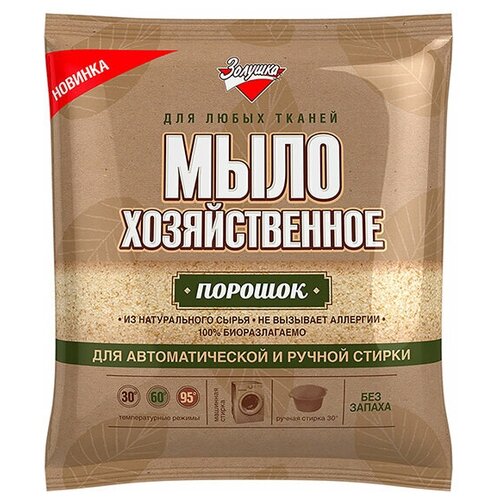 Натуральное хозяйственное мыло-порошок "Золушка" предназначено для стирки одежды, белья в автоматических стиральных машинах и вручную. Мыло-порошок "Золушка" обладает высокой моющей способностью, а также отбеливающим, дезинфицирующим, пятновыводным действием. Подходит для стирки изделий из хлопка, синтетики и шерсти, при стирке не повреждает структуру тканей, придает цветам яркость и насыщенность. Из натурального сырья. Не вызывает аллергии. Для любых тканей.