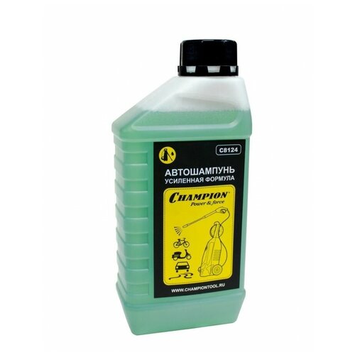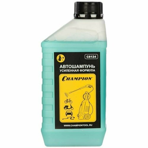 Автошампунь, усиленная формула 1л Champion C8124 - химическое средство для мытья кузова автомобиля и корпуса прочей техники. Раствор легко справляется с тяжелыми загрязнениями. Применяется совместно с автоматической мойкой высокого давления.