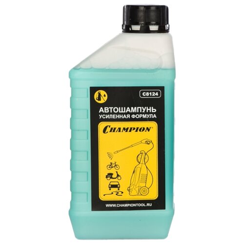 Автошампунь, усиленная формула 1л Champion C8124 - химическое средство для мытья кузова автомобиля и корпуса прочей техники. Раствор легко справляется с тяжелыми загрязнениями. Применяется совместно с автоматической мойкой высокого давления.