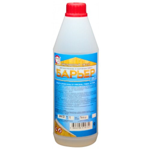 Биозащитный состав для древесины барьер BIO бесцветный, бутылка 1 кг 4665296510754 служит для защиты деревянных поверхностей от биопоражений (плесневых, окрашивающих, дереворазрушающих грибов, водорослей и жуков древоточцев). Средство сохраняет цвет и текстуру дерева, не влияет на прочность и паропроницаемость материала. Продукт безвреден для людей и домашних животных.