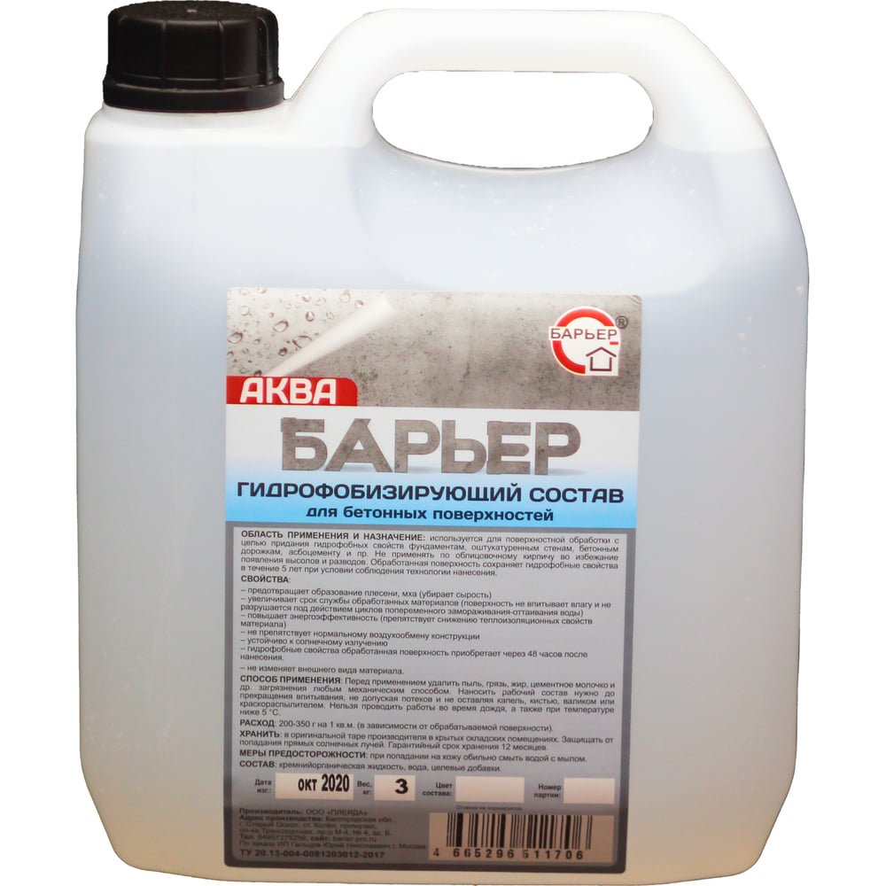Гидрофобизирующий состав для бетона Барьер / АКВА / 4665296513687