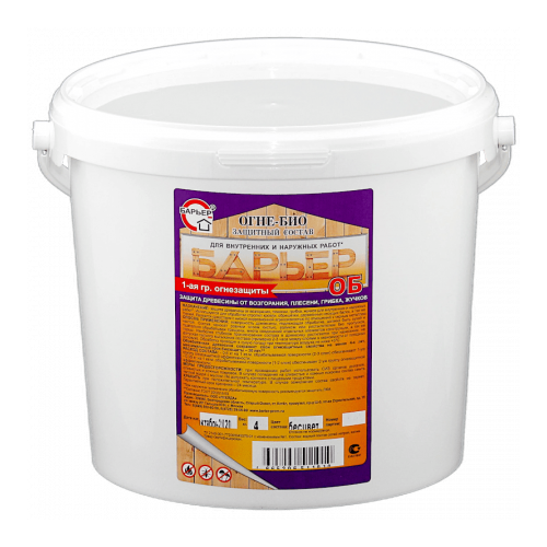 Огнебиозащита (концентрат 1:4) 1-й группы для древесины Барьер-ОБ, ведро 4 кг
