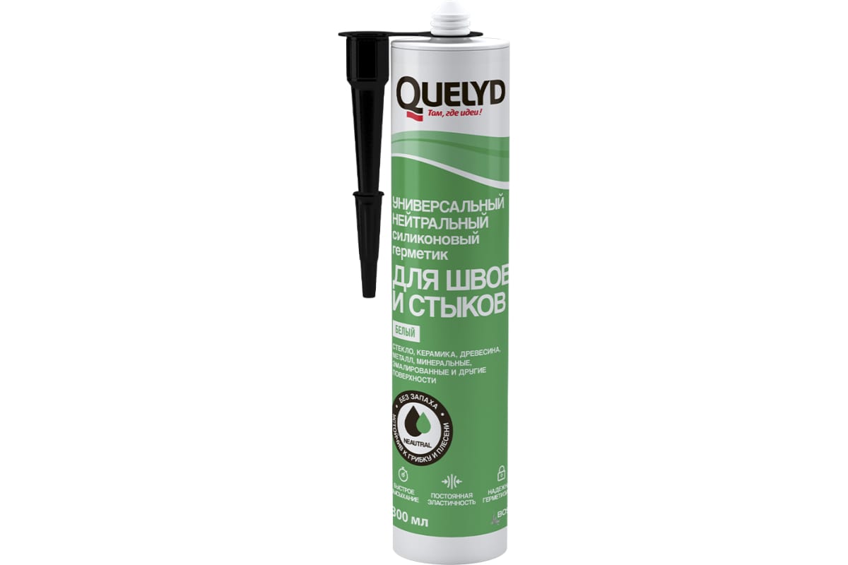 Универсальный силиконовый герметик для швов и стыков белый 300 мл Quelyd/24