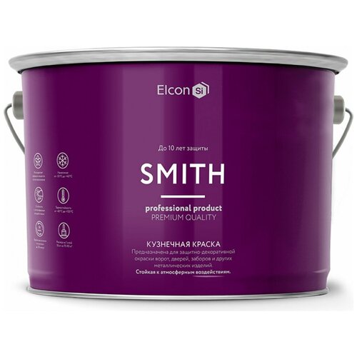 Кузнечная краска Elcon Smith предназначена для защитно-декоративной окраски металлических изделий, полученных с помощью ковки, штамповки, литья из чугуна, стали, цветных металлов и их сплавов. Краска используется для окраски ворот, дверей, фонарей, светильников и других изделий, подвергающихся в процессе эксплуатации атмосферным воздействиям и перепадам температур от -60°С до +150°С.