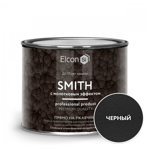 Elcon Быстросохнущая краска по металлу Elcon Smith с молотковым эффектом черная 0,4кг 00-00002872