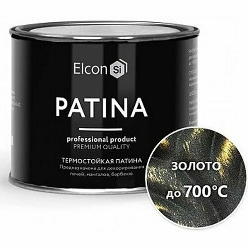 Краска декоративная термостойкая Elcon Patina, 0,2 кг, золото