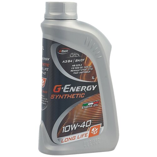 Синтетическое моторное масло на основе базовых компонентов G-Base для бензиновых и дизельных двигателей автомобилей. Благодаря надежной защите деталей от износа и низкому расходу на угар позволяет увеличить интервалы между заменами масла и сохранить ресурс двигателя по сравнению с маслами на минеральной и полусинтетической основе класса API SL и ниже. Синтетический продукт, соответствующий требованиям API SN, – оптимальное решение для двигателей, где требуется вязкость SAE 10W-40 (согласно рекомендациям автопроизводителя). Возможность увеличения интервала замены по сравнению с маслами уровня API SL на минеральной или полусинтетической основе согласно рекомендациям автопроизводителя. Поддерживает чистоту двигателя, нейтрализует негативное влияние топлива переменного качества. Надежно защищает от износа, позволяя экономить на внеплановых ремонтах. Сохраняет ресурс работы и срок службы двигателя благодаря стойкости к образованию как низкотемпературных, так и высокотемпературных отложений.Одобрения / Соответствия / Уровень свойств: API SN/CF, ACEA A3/B4, MB 229.3, VW 502.00/505.00, Renault 0700/0710, ПАО «автоваз»