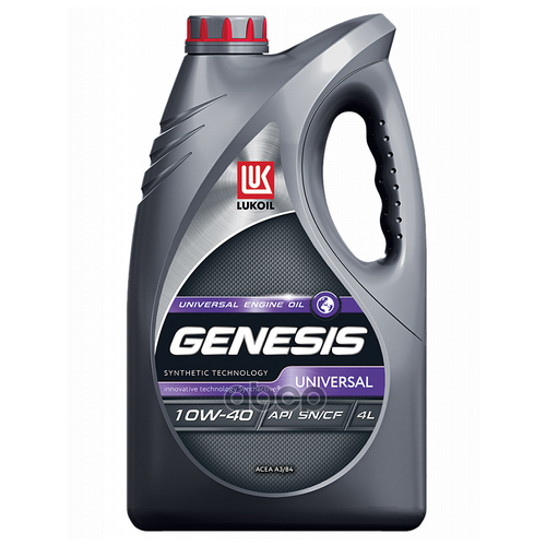 LUKOIL GENESIS ADVANCED 10W-40 – всесезонное моторное масло на основе синтетических технологий для применения в бензиновых и дизельных двигателях новых и подержанных автомобилей импортного иотечественного производства в тяжелых режимах эксплуатации. Масло лицензировано в соответствии с наивысшей категорией эксплуатационных свойств API SN.LUKOIL GENESIS ADVANCED 10W-40 изготовлено с применением передовой технологии Synthactive®, обеспечивающей исключительные противоизносные свойства и длительный срок службы масла.область применения:LUKOIL GENESIS ADVANCED 10W-40 рекомендовано к применению в двигателях автомобилей Mercedes Benz, Volkswagen, Renault, а также KIA, Hyundai, Toyota, Nissan, Honda, Mitsubishi и других автопроизводителей, требующих уровня свойств API SN и/или ACEA A3/B4, A3/B3. Соответствует требованиям концернов Peugeot-Citroen, Renault и Fiat.преимущества:Наивысший уровень эксплуатационных свойств по классификации API SNПревосходная защита от износа в жестких условиях эксплуатацииСинтетическая базовая основа позволяет производить легкий запуск двигателя в условиях низких температурУвеличенное содержание присадок позволяет продлить срок службы масла в российских условиях эксплуатацииУлучшенные моющие, диспергирующие и нейтрализующие свойства обеспечивают чистоту всех деталей двигателя на протяжении всего срока службы маслаПоказатель низкотемпературной прокачиваемости превосходит требования стандарта SAE более чем в 3 разодобрено:API SN - лицензировано (API №2523)MB-Approval 229.3соответствует требованиям:API CFACEA A3/B4, A3/B3PSA B71 2294, B71 2300Renault RN 0700/0710GM LL-A/B-025Fiat 9.55535-G2VW 502.00/505.00производитель: Лукойл, Россия.