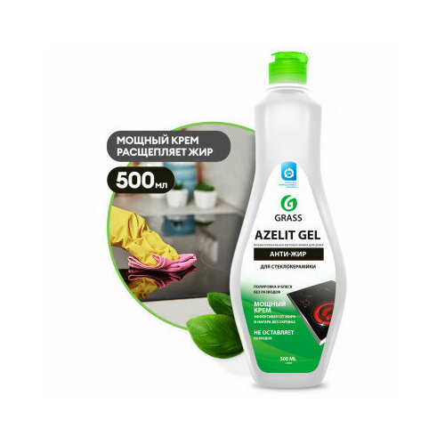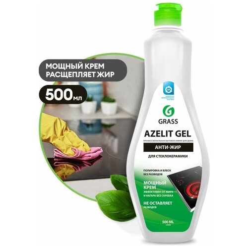 GRASS/ Чистящее средство для кухни Azelit Gel для стеклокерамики, анти-жир, антижир, азелит для кухни, 500 мл.