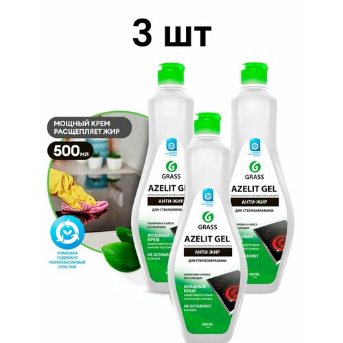 Grass Гель для стеклокерамики для удаления жира, нагара и копоти Azelit 500мл, 3 шт.