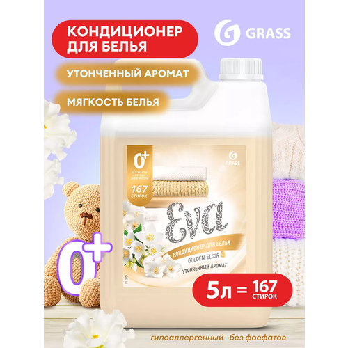 Кондиционер ополаскиватель для стирки белья Grass Eva Golden Elixir 5 литров бытовая химия универсальный