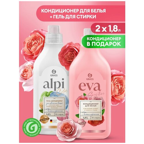 Набор для стирки Grass гель для цветных вещей Alpi 1,8 л и кондиционер ополаскиватель EVA Sensitive 1,8 л
