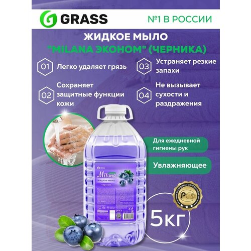 Жидкое мыло GRASS Milana Эконом Черника, 5 л