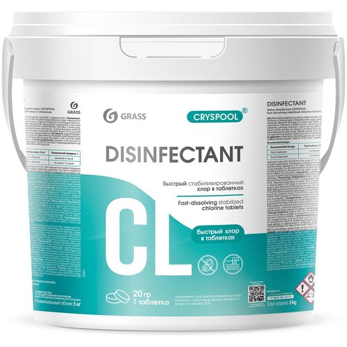 Средство дезинфицирующее для воды CRYSPOOL быстрый стабилизированный хлор в таблетках (5кг) Grass