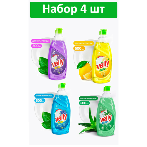 Набор средств для мытья посуды GRASS Velly Лимон, Бархатная фиалка, Нежные ручки, Алоэ( 4шт. по 500 мл)