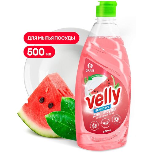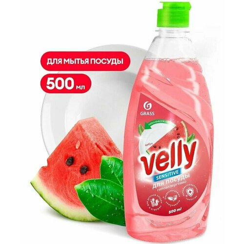 Grass Средство для мытья посуды Velly Sensitive, Арбуз, флакон 500 мл - 2 шт