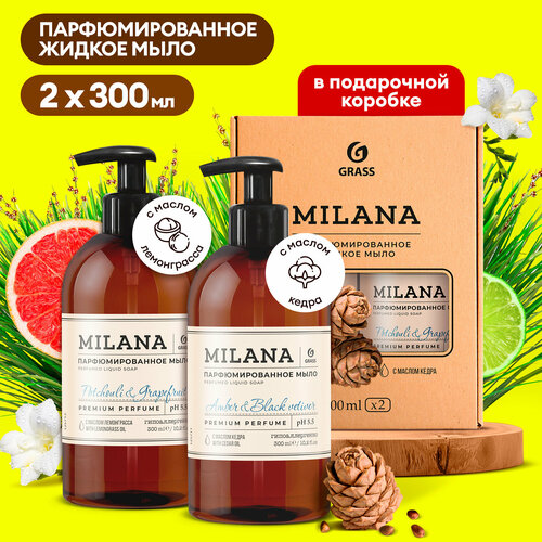 Подарочный набор парфюмированного мыла Milana Amber & Black Vetiver 300 мл+Milana Patchouli & Grapefruit 300 мл