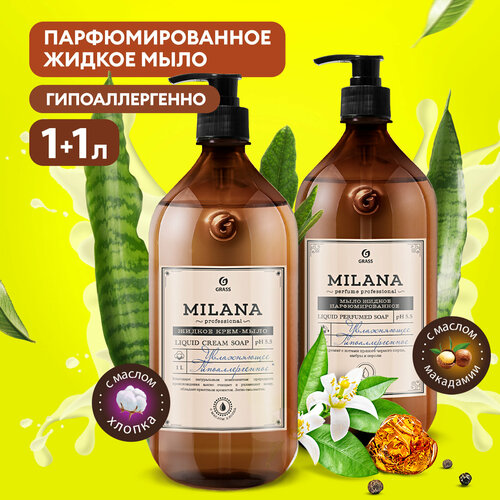 Жидкое крем-мыло Grass Milana Professional 1л+1л увлажняющее набор 2 шт.