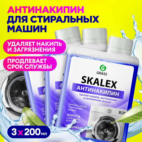 Набор универсальных чистящих средств SKALEX антинакипин (3 шт. по 200 мл) Очиститель для стиральных машин SKALEX от GRASS - устраняет неприятные запахи, известковый налет и накипь. Удаляет мыльный налет. Очищает внутренние части стиральной машины и обеспечивает гигиеническую чистоту. Регулярная чистка от накипи увеличивает срок службы машины. Способ применения: для наилучшего результата рекомендуется применять пустой цикл при температурном режиме 60 С, используя в одно применение 1 флакон. Средство подходит для всех видов стиральных машин. Способ применения: Для наилучшего результата рекомендуется применять пустой цикл при температурном режиме 60 С 1 раз в три месяца, используя каждый раз 1 бутылочку. Средство подходит для всех видов стиральных машин.