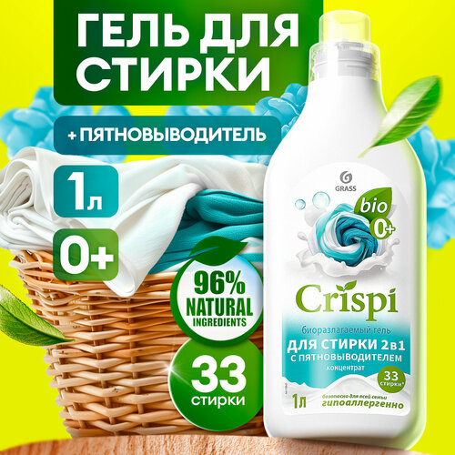 Биоразлагаемый универсальный концентрированный гель для стирки белья 2 в1 CRISPI с пятновыводителем 1л от Grass на 33 стирки - предназначен для высокоэффективной очистки всех типов тканей (для цветного, чёрного, светлого) в воде любой жесткости. За счёт натуральных компонентов - гель полностью безопасен для стирки детского белья и вещей новорожденных (0+). За счёт пятновыводителя, входящего в состав, гель для стирки эффективно удаляет сложные, застарелые загрязнения любого типа, сохраняя цвет, яркость и структуру одежды, придавая ей мягкость и свежий аромат. Средство на основе биоразлагаемых тензитов и натуральных компонентов, не содержит фосфатов, фосфонатов, парабенов и хлора, не вызывает аллергических реакций. Подходит для всех типов стиральных машин, для автоматической и ручной стирки, безопасен для септика. С нашими средствами из линейки Грасс - ваша стирка белья преобразится в многоплановый, интересный процесс, подарив комплексный уход и приятный аромат всем вашим вещам!